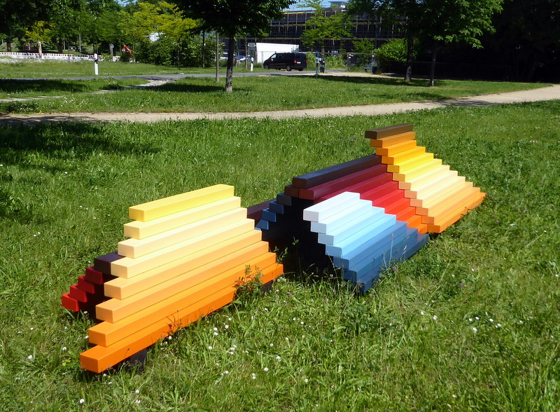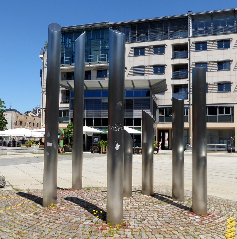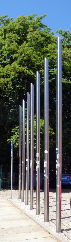 - zweiteiliges Kunstwerk, jeweils 7 Metallsäulen: dünne Säulen am südlichen Eingang (Nähe Bierbrücke) und dicke, unterschiedlich hohe Säulen am nördlichen Eingang (Seeberplatz)