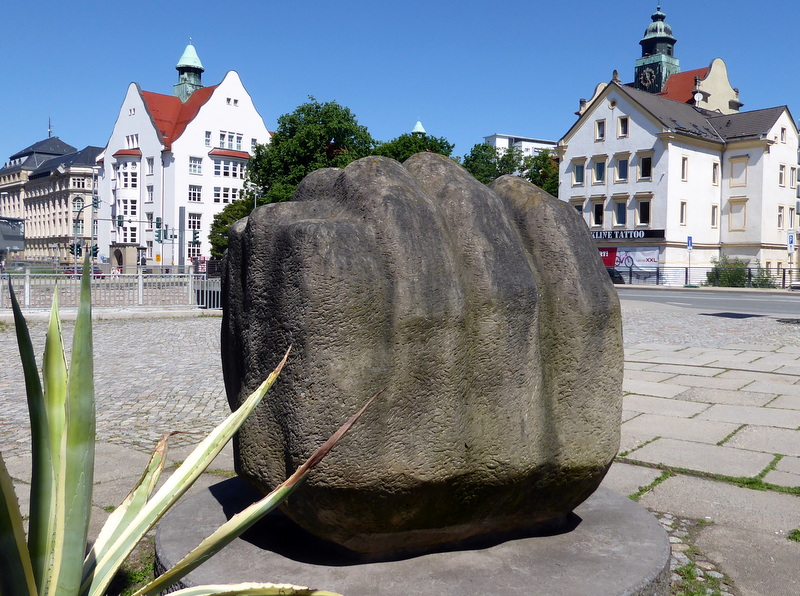 - auf der Freifläche vor der Schmidtbankpassage (gestaltet 1999 - 2001 von Karl Clauss Dietel und Lutz Rudolph)