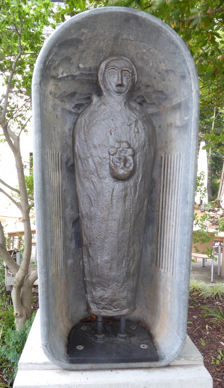 - weibliche Figur (Madonna/Nonne ?) in aufrechtstehender Badewanne